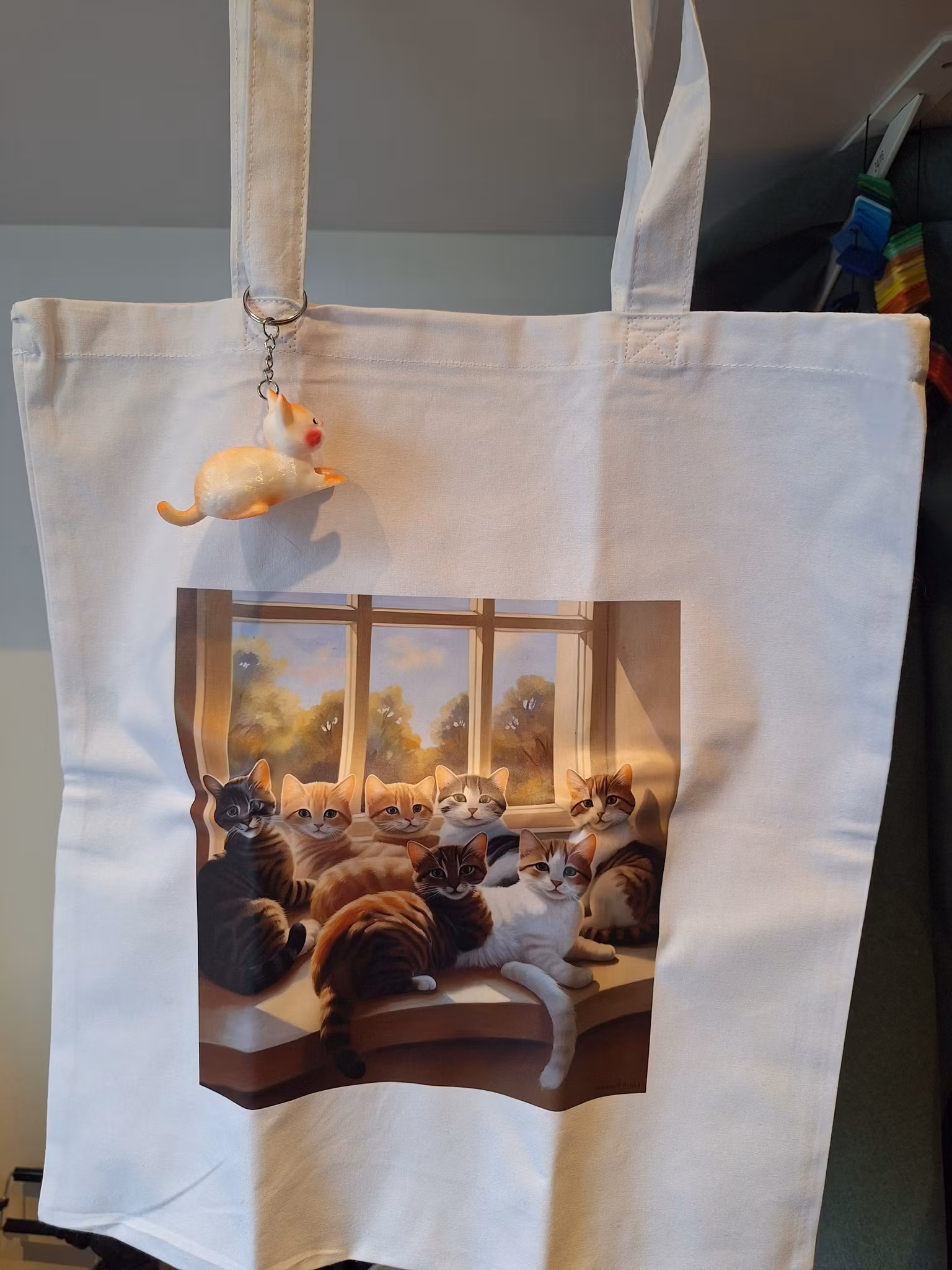 Varje shoppingkasse kan kompletteras med ett färgglatt hänge som ger charm.