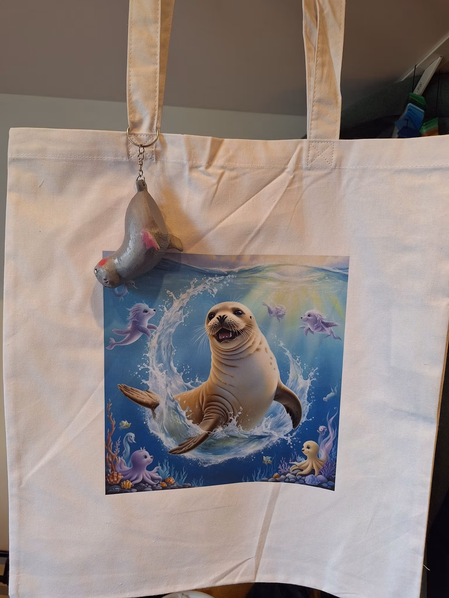 Varje shoppingkasse kan kompletteras med ett färgglatt hänge som ger charm.