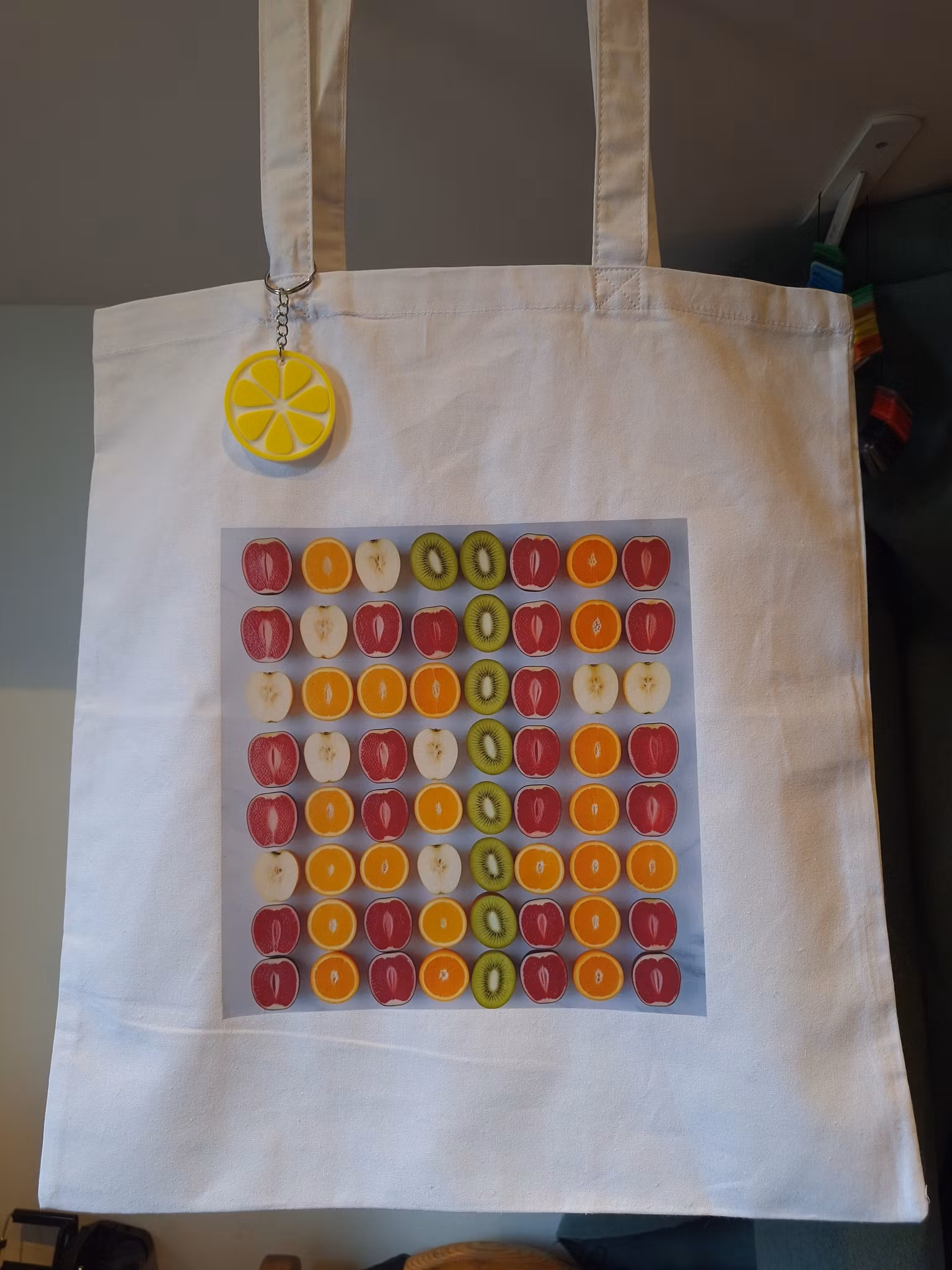 Varje shoppingkasse kan kompletteras med ett färgglatt hänge som ger charm.
